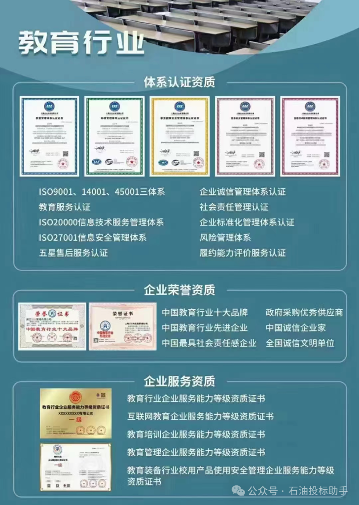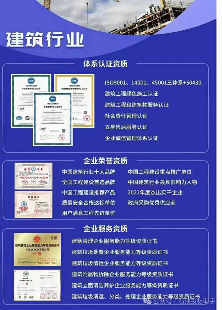 各行业有效的资质证件办理,行业招投标否决项及加分项涉及资质2024/03/31新闻中心 行业动态 2510资证质书办理的好处★投加标分、强势入围①信证用书直接高提企业形象②提企升业知名度③有于利企业营经推广产品④具告广效应⑤助企力业在行中业竞争更具优势上一篇: 中石油培训走进西安古都—2024年中石油供应商评标及标书制作培训下一篇: 《企业信息公示暂行条例》修改:建立信用修复制度 完善退出机制相关推荐